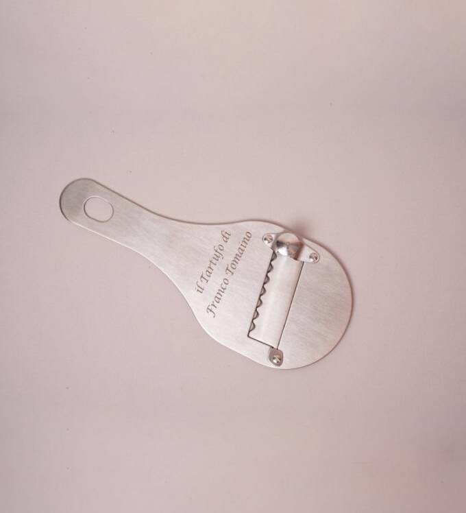 Essenziale, resistente e di grande precisione, questo affettatartufi interamente in acciaio inox è progettato per garantire un taglio perfetto e costante. La lama regolabile consente di affettare tartufi di diverse consistenze in modo semplice e rapido, valorizzando ogni preparazione con scaglie sottili ed eleganti.