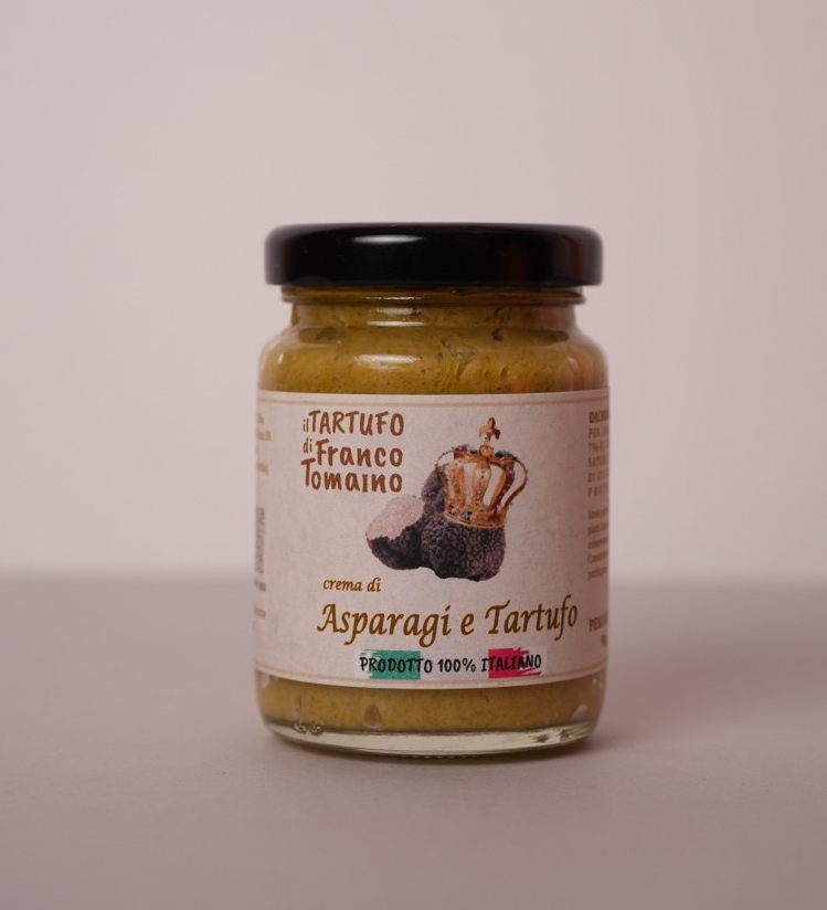 Asparagi 75%, olio extravergine di oliva 18%, pezzi di tartufo nero estivo (Tuber Aestivum Vitt. – provenienza Italia) 4%, tonno, sale, pepe, prezzemolo, aroma.